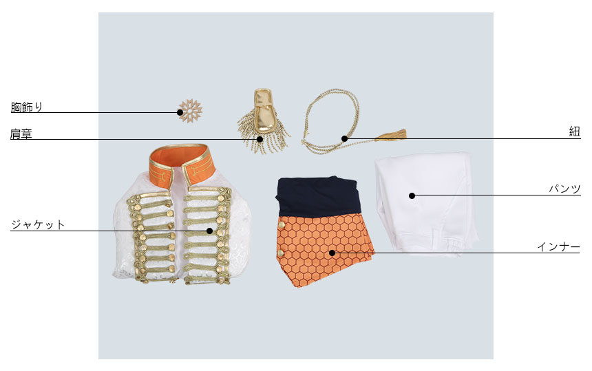 ジャケット、インナー、パンツ、飾り物(紐、肩章、胸飾り)