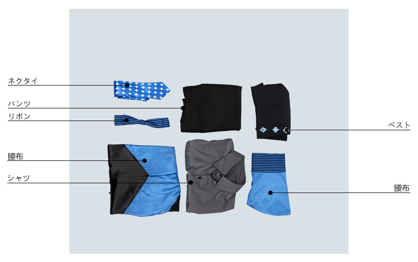 ネクタイ、腰布2点、リボンも付属しています。