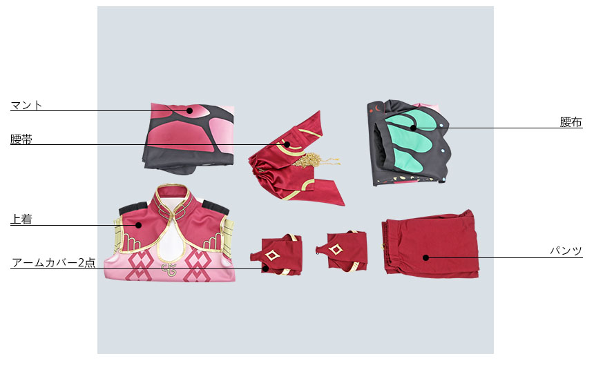マント、上着、パンツ、飾り物(腰帯、腰布、アームカバー2点)