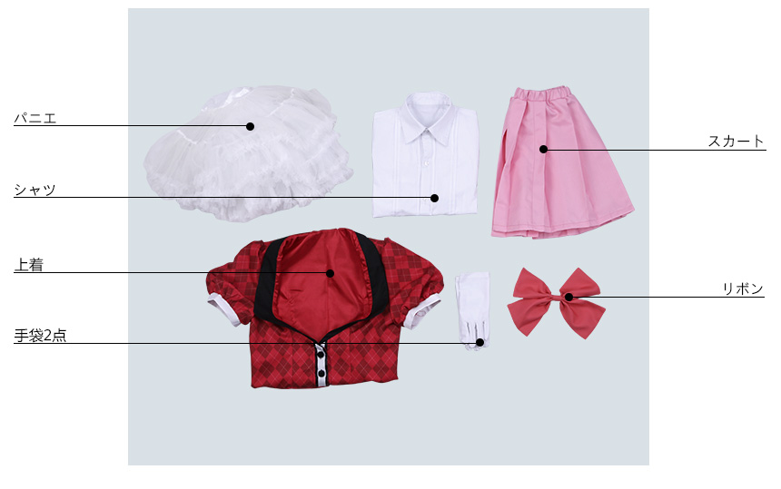 リボン、手袋2点、パニエも付属しています。