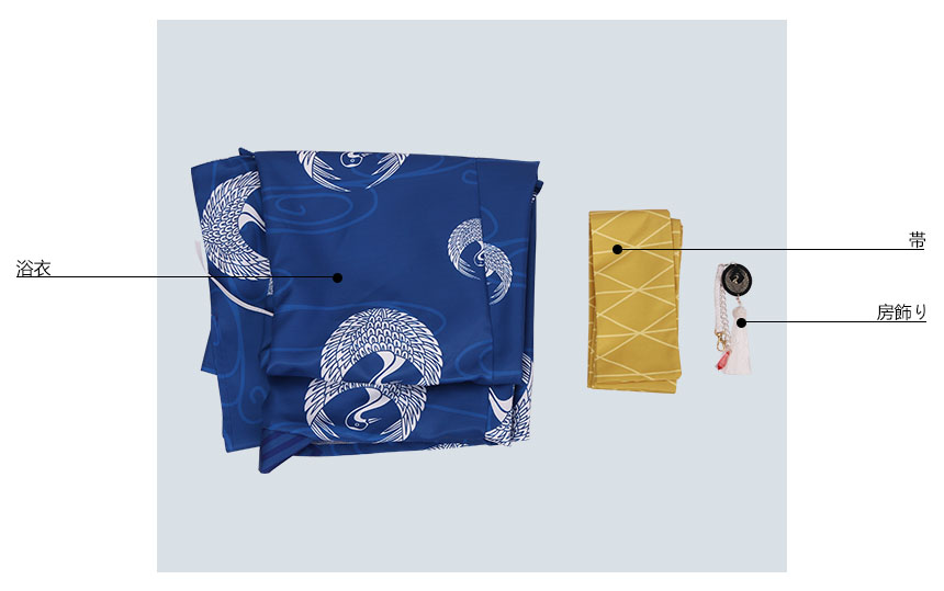 ポリエステルツイルで製作しました。鶴柄がプリントされています。襟の左右に翼の模様が付いています。