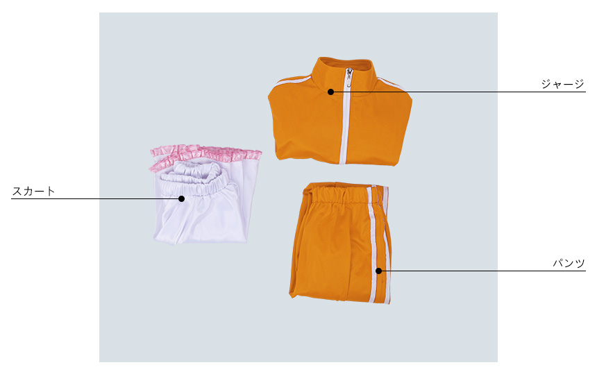 ジャージ生地で製作されました。サイドに白いラインを2本付けています。