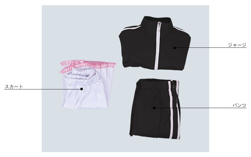 ジャージ、スカート、パンツ
