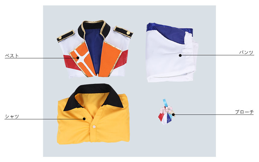 ベスト、シャツ、パンツ、飾り物(ブローチ)