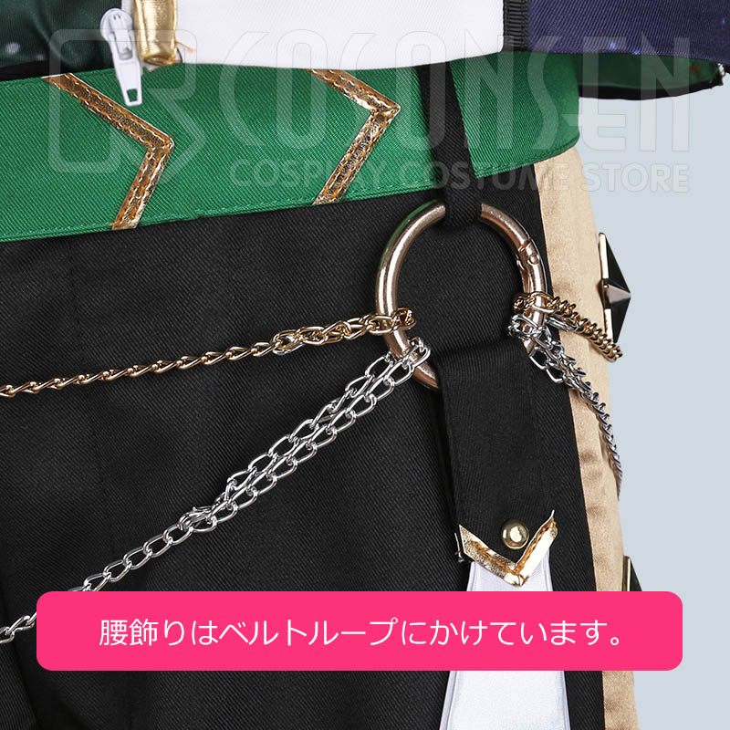 チェーン、帯、ベルト、腰飾り、手袋2点も付属しています。