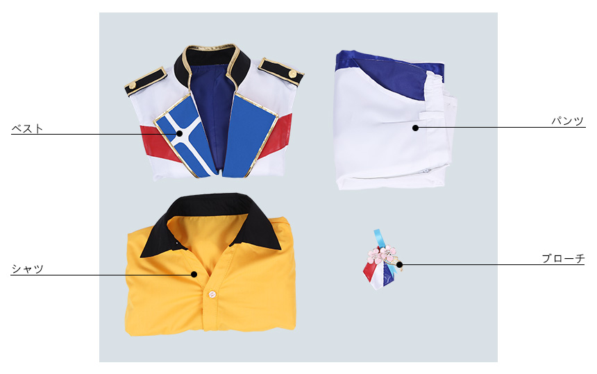 ベスト、シャツ、パンツ、飾り物(ブローチ)