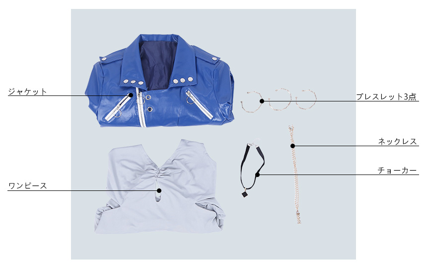 チョーカー、ネックレス、ブレスレット3点も付属しています。