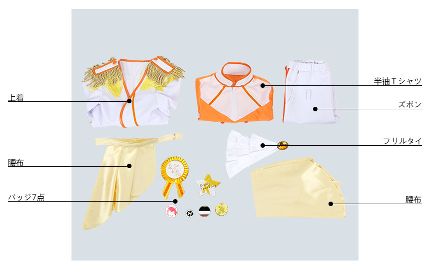 フリルタイ、バッチ6点、腰布2点も付属しています。
