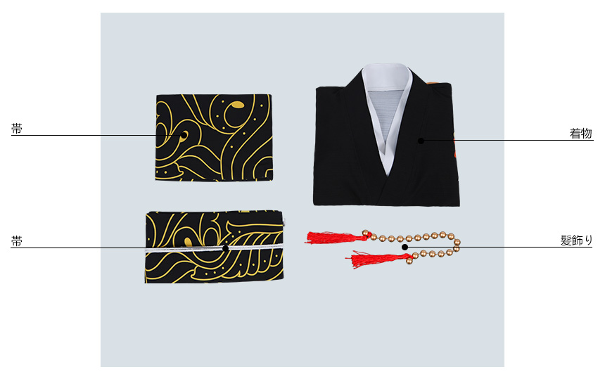 帯2点、髪飾りも付属しています。