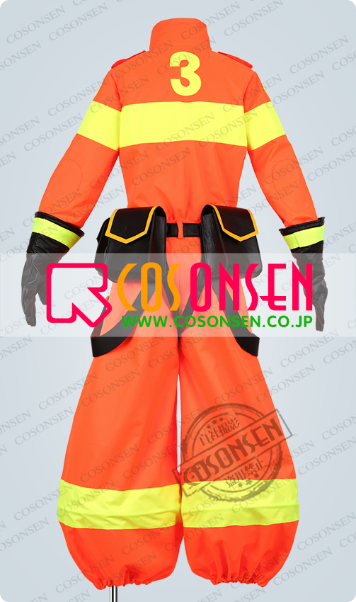 防水布で製作しました。オレンジ色をベースにして、後ろに数字3の模様がついています。肩に特徴的な柄がプリントされて、よく原作に忠実にしています。