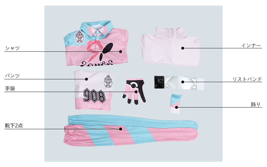 リストバンド、飾り、手袋、靴下2点も付属しています。