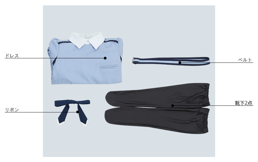 ドレス、飾り物(靴下2点、ベルト、リボン)