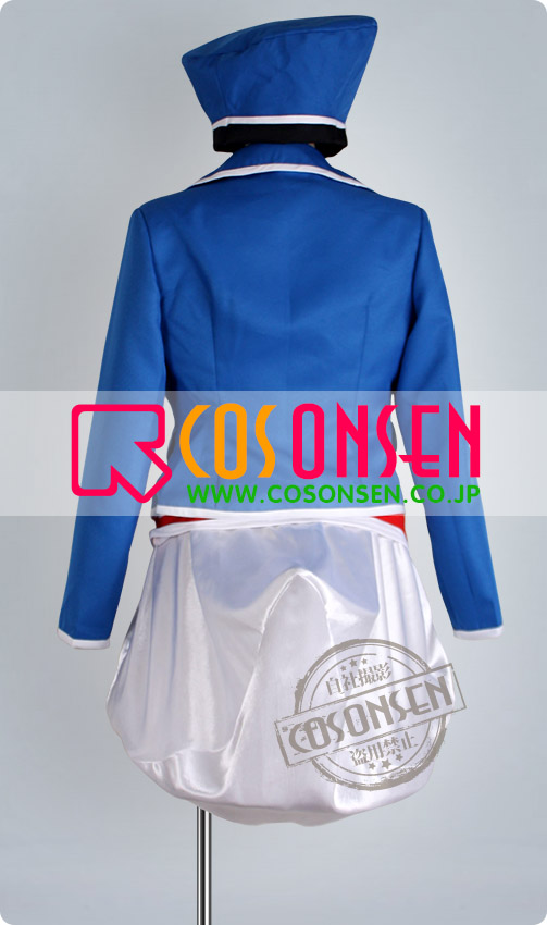 白を基調したサテン生地で制作します。後ろのデザインは原作とそっくりです
