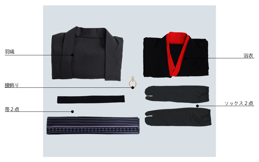 帯2点、腰飾り、ソックス2点も付属しています。