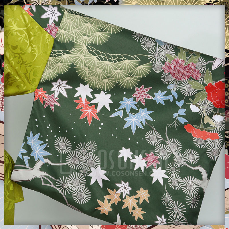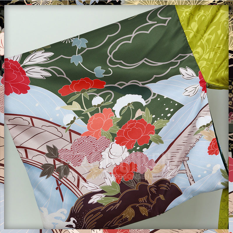 ジャガード生地で製作しています。下裾は不規則なデザインで、袖と襟に綺麗な花模様がプリントされています。
