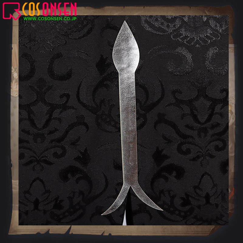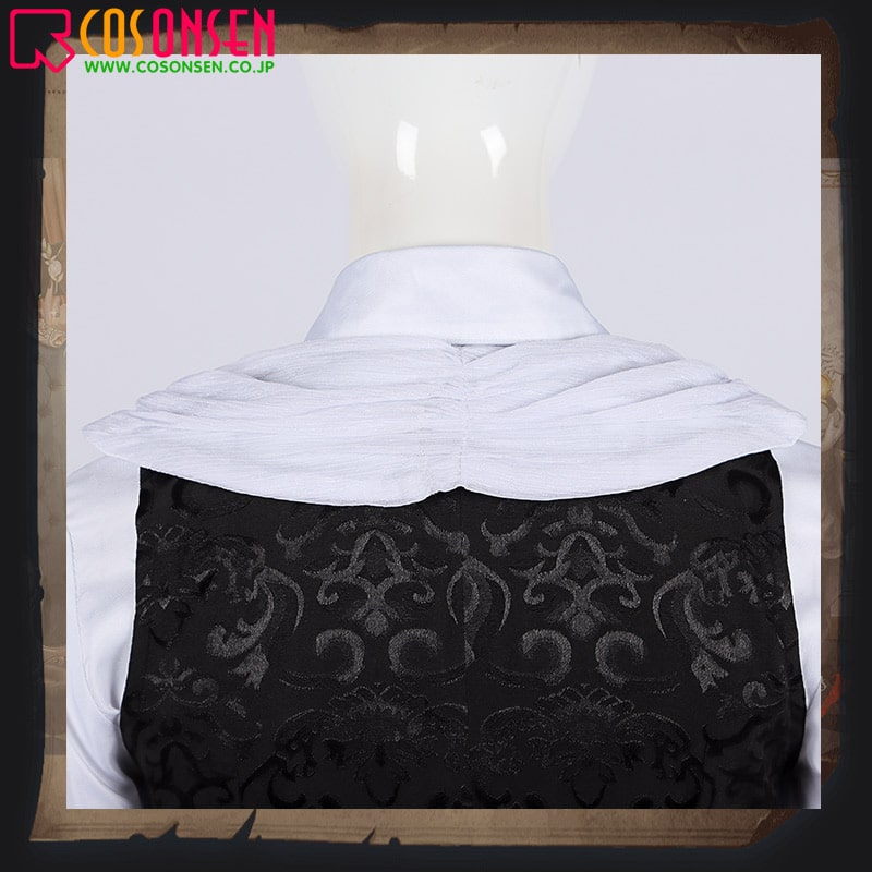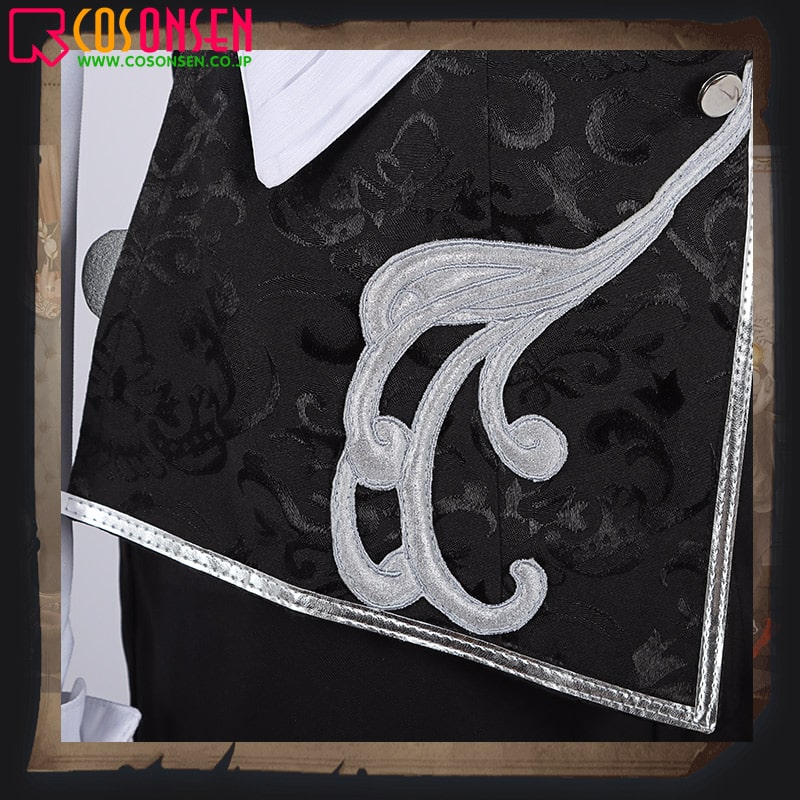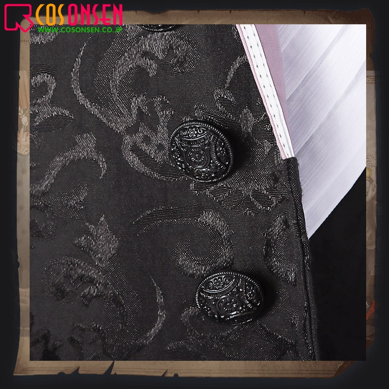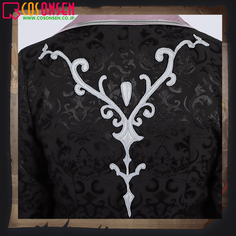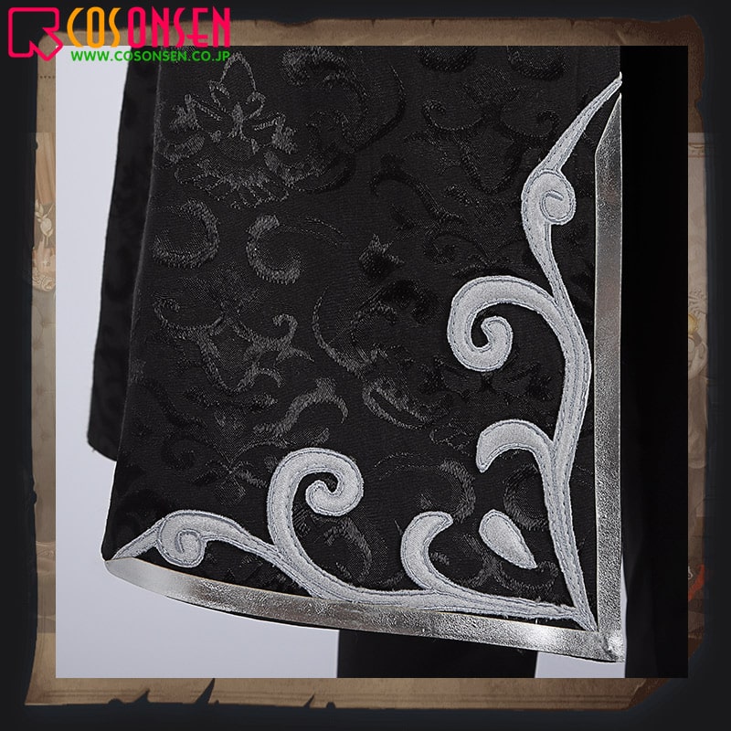 黒を基調をとして、華麗なジャガード生地で作られて高級感満々です。襟と裾に銀色の合皮で縁取りされていて、上品に見えます。後ろにスリットが入っていて、原作に忠実な模様が綺麗に施されていて再現度が高いです。