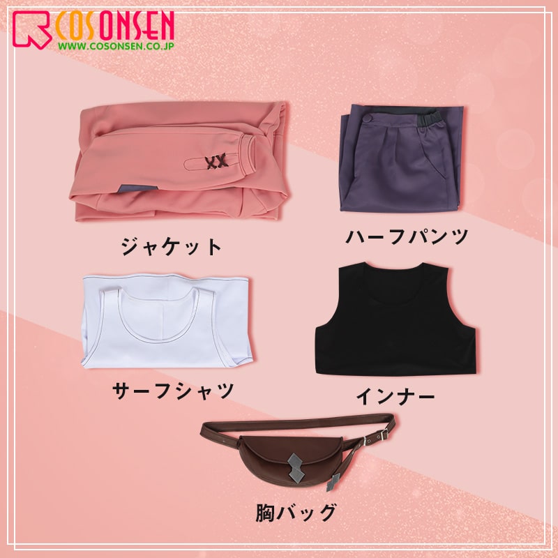 ジャケット、サーフシャツ、インナー、ハーフパンツ、飾り物(胸バッグ)