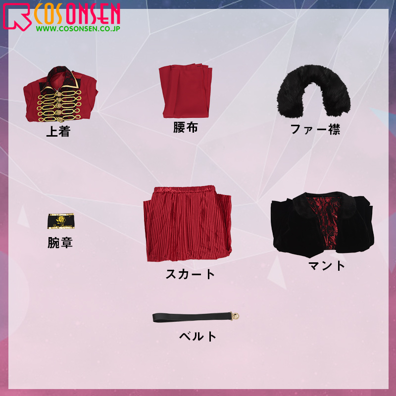 マント、上着、スカート、飾り物(ファー襟、腕章、ベルト、腰布)