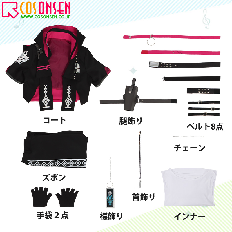 コート、インナー、ズボン、飾り物(首飾り、襟飾り、手袋2点、ベルト8点、チェーン、腿飾り)