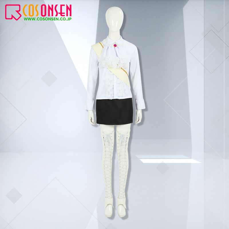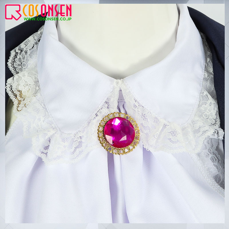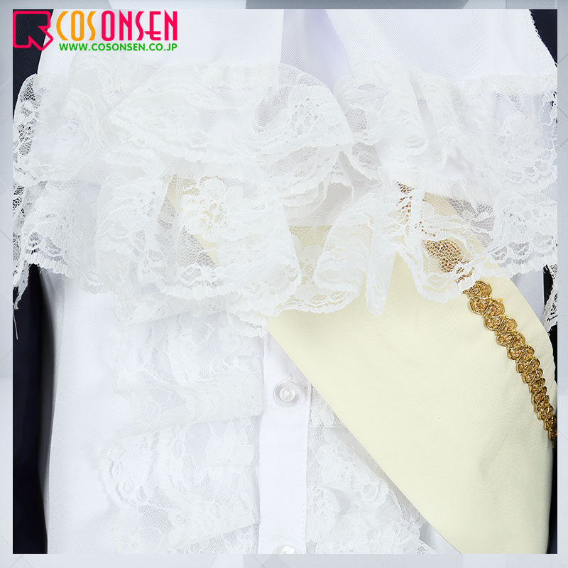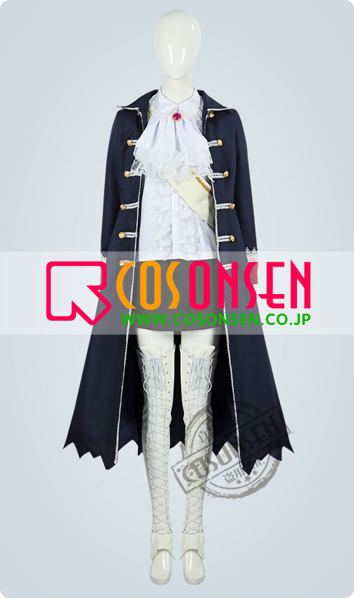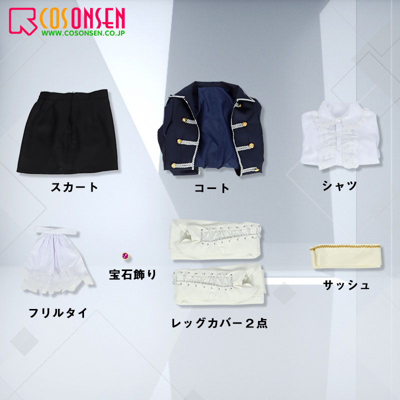 コート、シャツ、スカート、飾り物(フリルタイ、宝石飾り、サッシュ、レッグカバー2点)