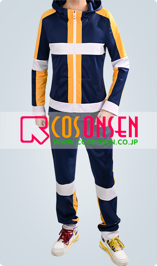 ダンボールニット生地とジャージ生地で制作しています。ネイビー、オレンジとホワイト三色の布を完璧に縫い合わせて個性的でカッコイイです。ジャージとして日常生活や運動する時でも着用できます。