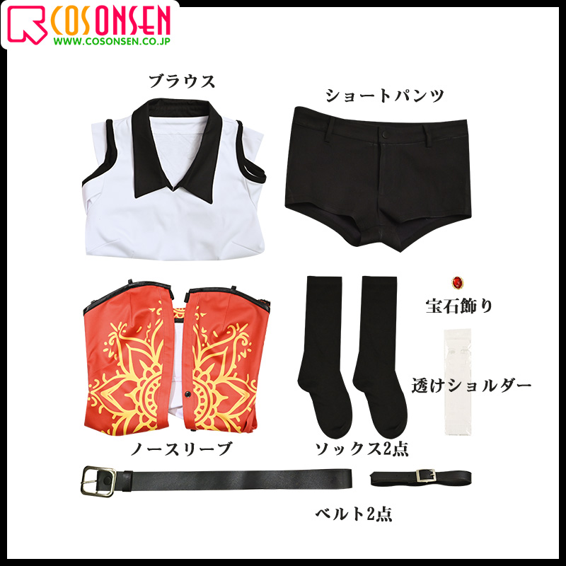 ノースリーブ、ブラウス、ショートパンツ、飾り物(ソックス2点、サ宝石飾り、透けショルダー、ベルト2点)