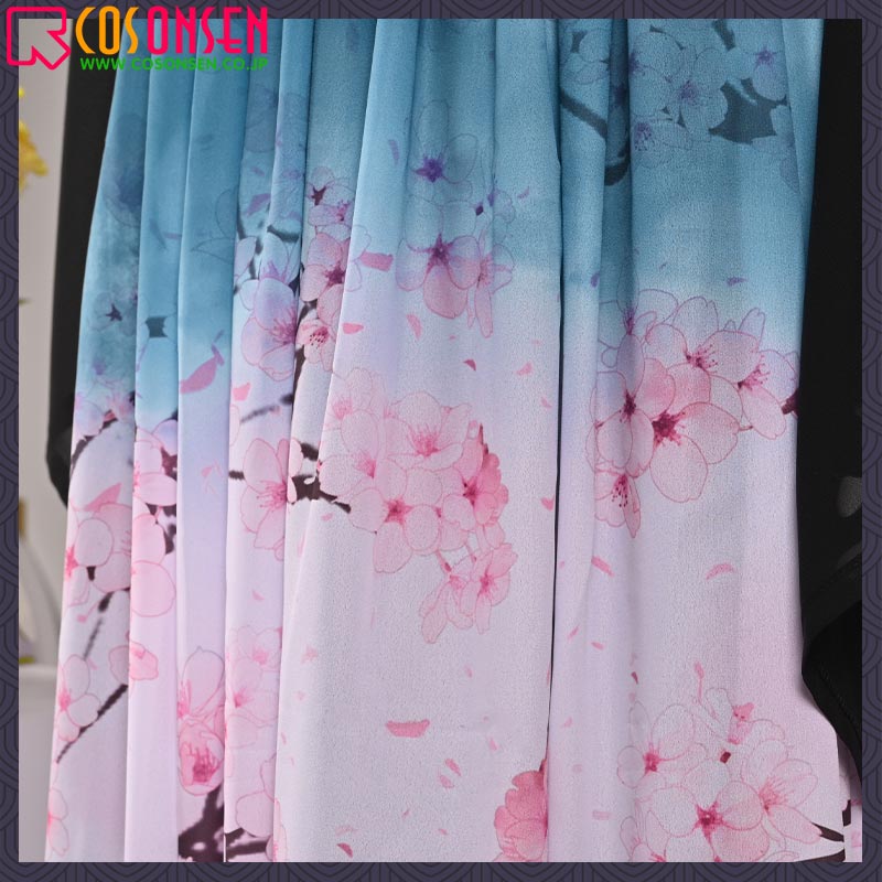 シフォンとジャガード生地で制作しています。スカートには桜の柄がプリントされています。とても華麗にみえます。