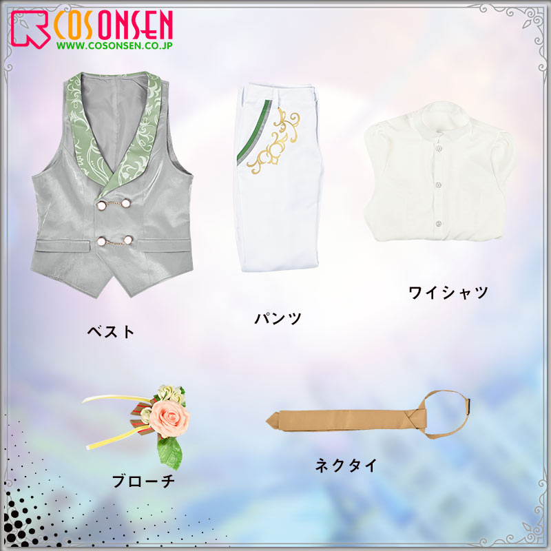ベスト、ワイシャツ、パンツ、飾り物(ブローチ、ネクタイ)