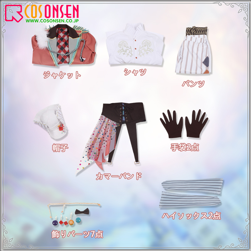 ジャケット、シャツ、パンツ、飾り物(帽子、カマーバンド、飾りパーツ7点、手袋2点、ハイソックス2点)