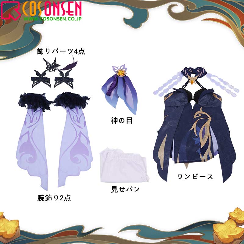 ワンピース、見せパン、飾り物(腕飾り2点、飾りパーツ4点、神の目)