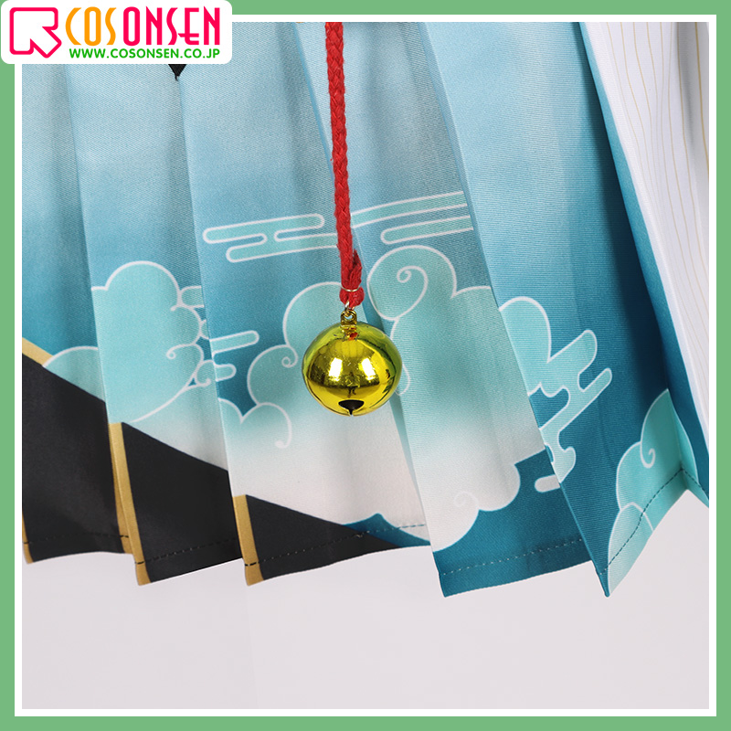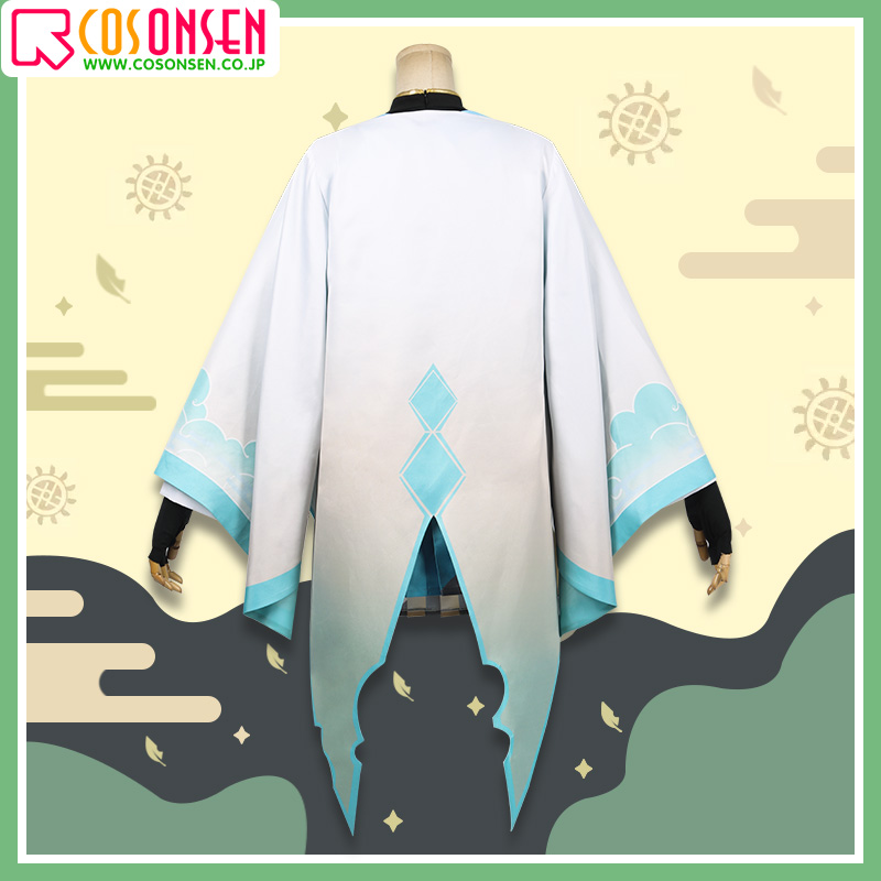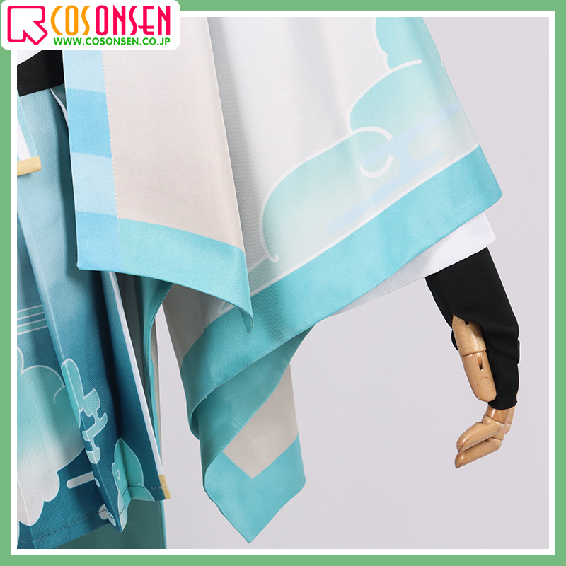 ポリエステルギャバで制作しています。袖口は大きくで、雲の模様が綺麗にプリントされてよく原作に忠実しています。後ろに不規則な裾のデザインで、菱形の図案がプリントされて細部までこだわって仕上がっています。
