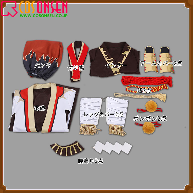 羽織、インナー、パンツ、飾り物(付け襟、アームカバー2点、紐3点、腰飾り2点、ポンポン2点、レッグカバー2点)