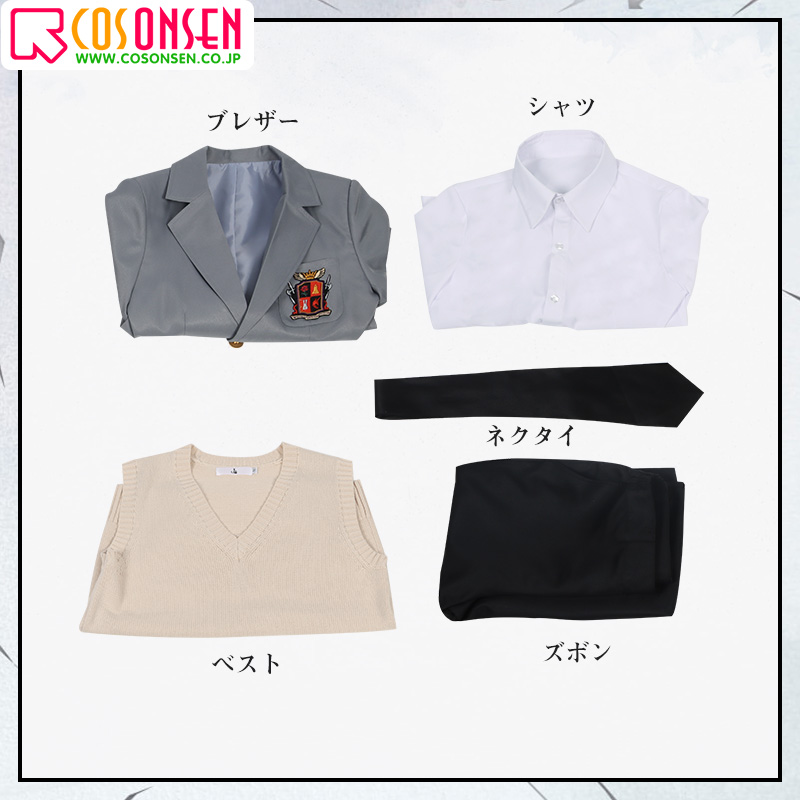 ブレザー、ベスト、シャツ、ズボン、飾り物(ネクタイ)