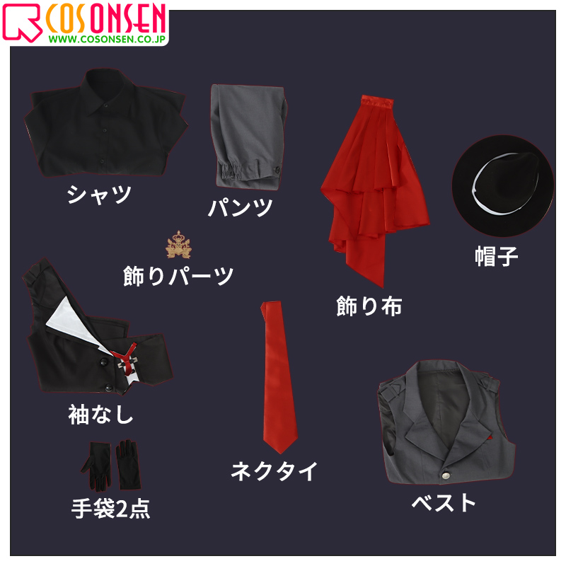 袖なし、ベスト、シャツ、パンツ、飾り物(帽子、ネクタイ、飾りパーツ、飾り布、手袋2点)