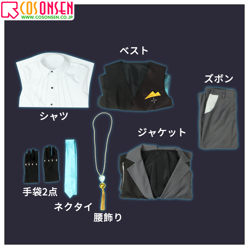 ジャケット、ベスト、シャツ、パンツ、飾り物(ネクタイ、腰飾り、手袋2点)