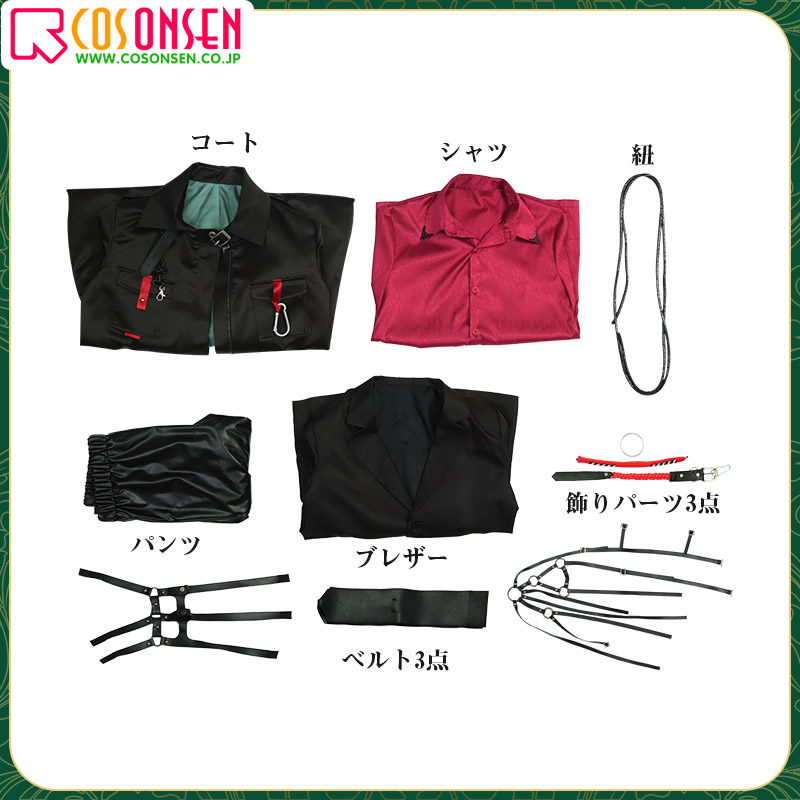 コート、ブレザー、シャツ、パンツ、飾り物(ベルト3点、紐、飾りパーツ3点)