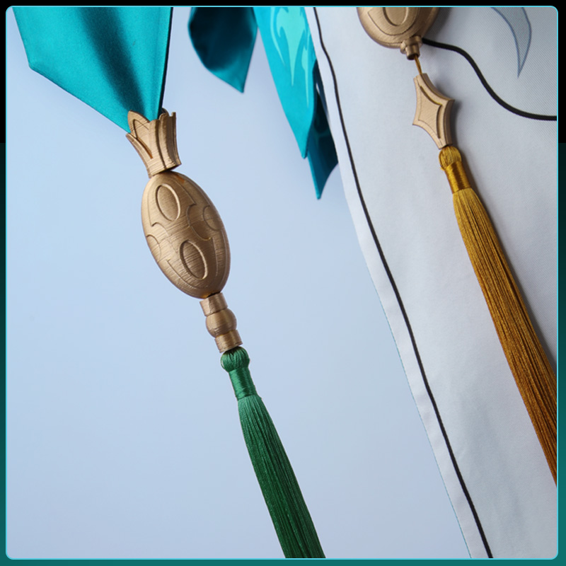 主にポリエステルギャバで製作しています。白を基調として、正面と後ろに多くの絵柄がプリントされて再現度が高いです。