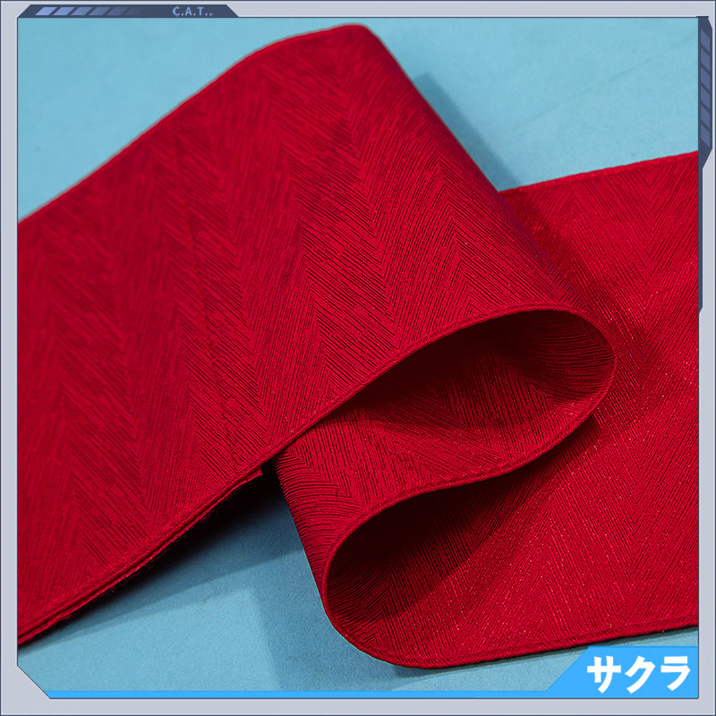ポリエステルギャバで製作しています。両側の透けてる部分は色ぽく見えています。