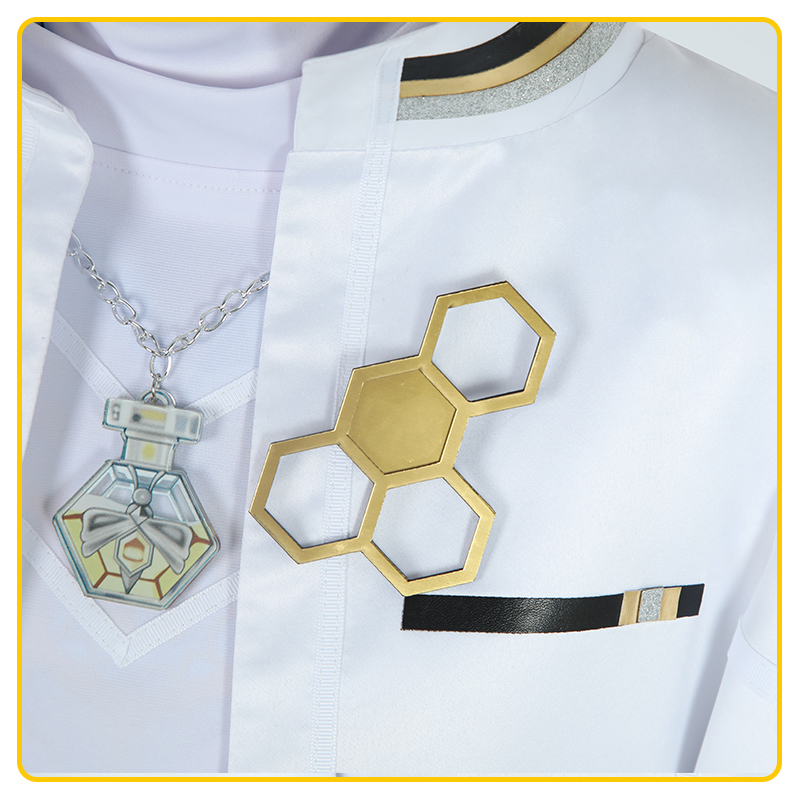 ポリエステルギャバで製作しています。白を基調として、後ろに蜜蜂羽のような裾があり、再現度が高いです。
