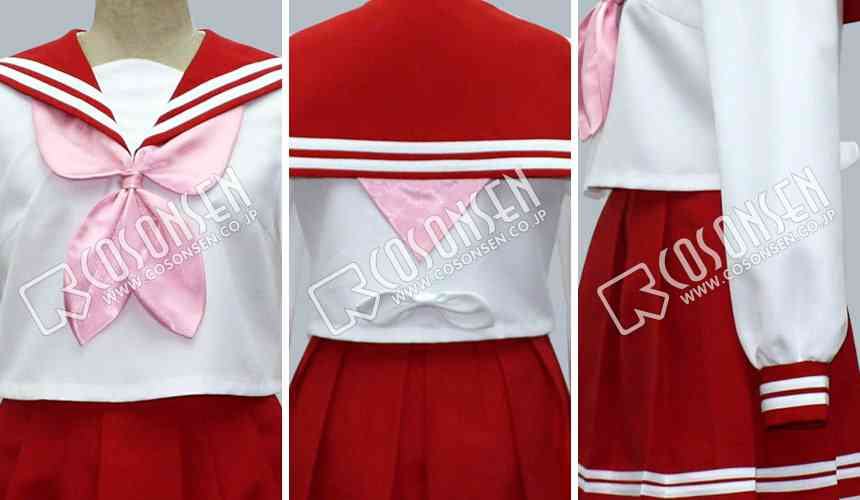 赤を基調したボリ混紡生地で製作します。裾の白のラインを付きます。出来る限り最大限度に原作を忠実しました。