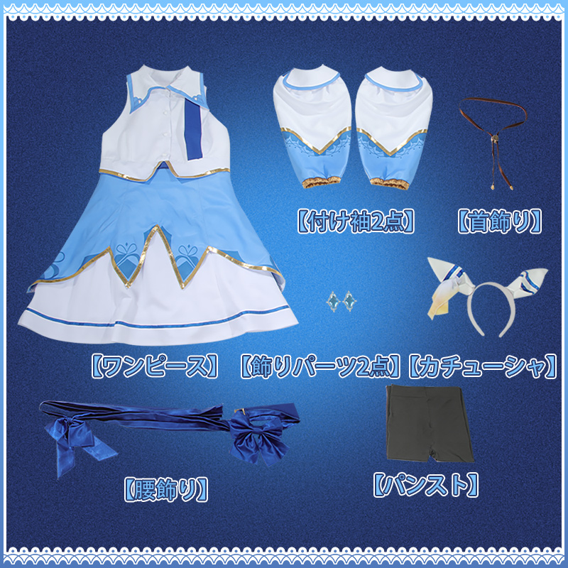 ワンピース、飾り物(カチューシャ、首飾り、付け袖2点、腰飾り、飾りパーツ2点、パンスト)