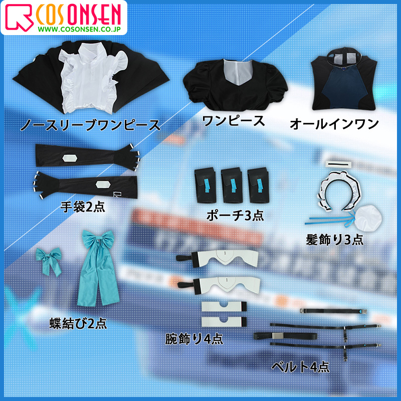 ノースリーブワンピース、ワンピース、オールインワン、飾り物(髪飾り3点、蝶結び2点、腕飾り4点、手袋2点、ベルト4点、ポーチ3点)