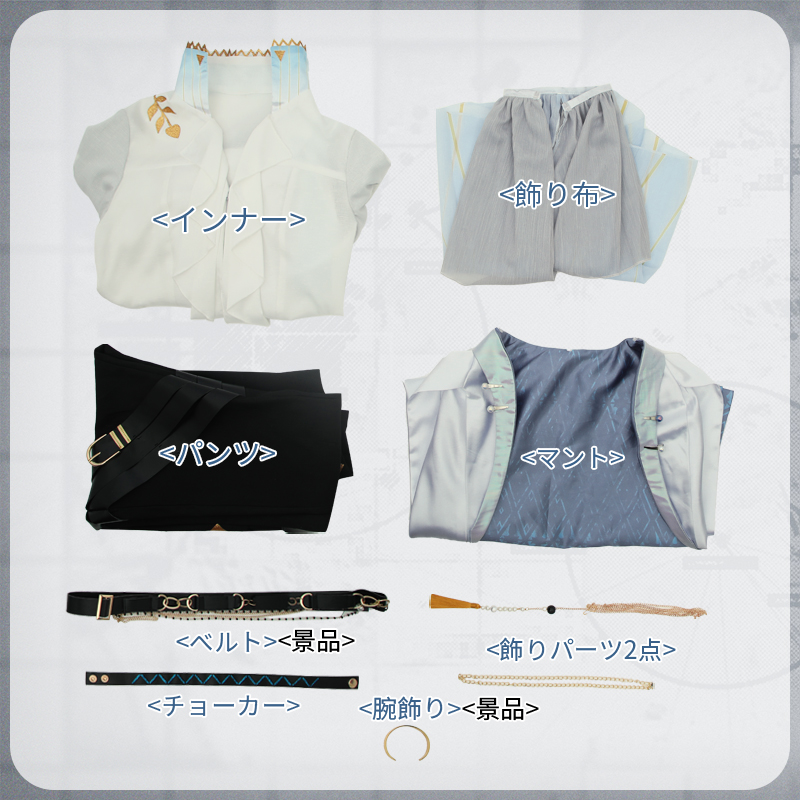 マント、インナー、パンツ、飾り物(チョーカー、飾り布、飾りパーツ2点)