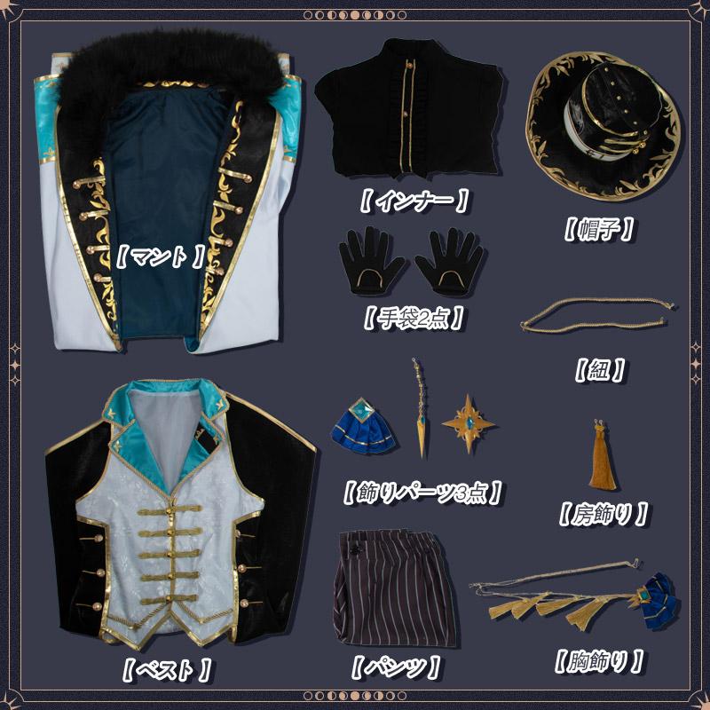 マント、ベスト、インナー、パンツ、飾り物(帽子、紐、胸飾り、房飾り、飾りパーツ3点、手袋2点)