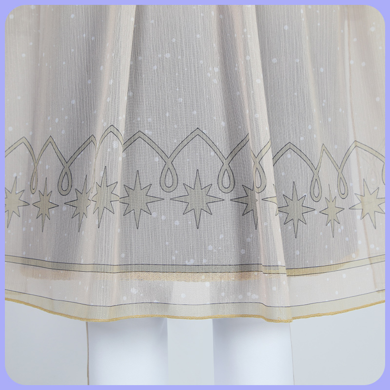 ポリエステルギャバで製作しています。白を基調として、両サイドに金色の柄が施されて再現度が高いです。