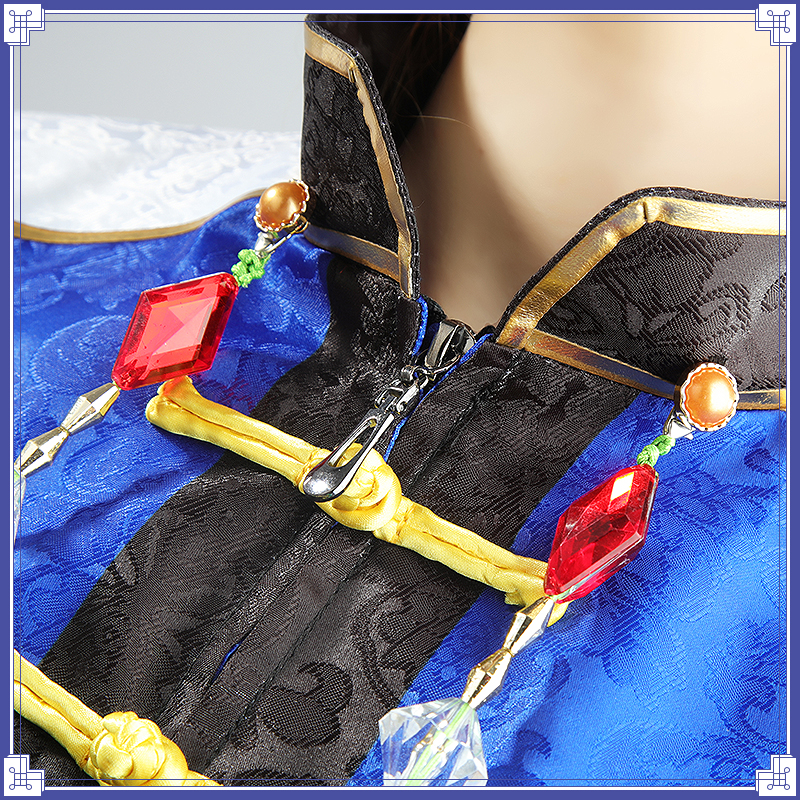 ジャガード生地で製作しています。中華風の上着で、裾に龍の絵柄がプリントされてかっこいいです。