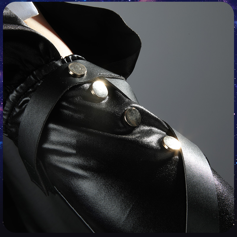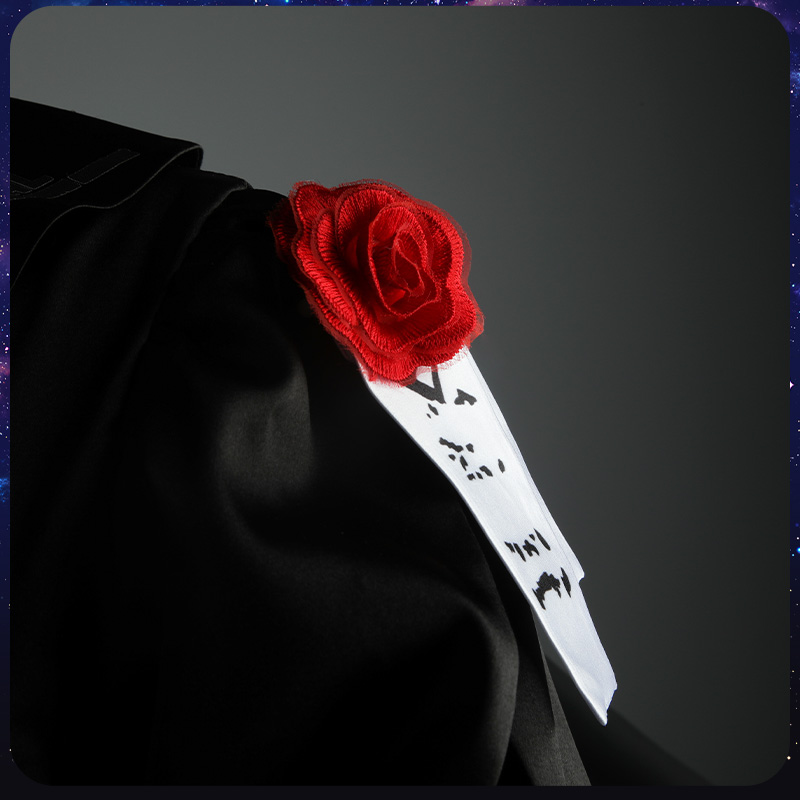 主にサテンで製作しています。黒を基調として、いい素材を使ったので着心地が高いです。後ろにチャックが付いて脱着が便利です。