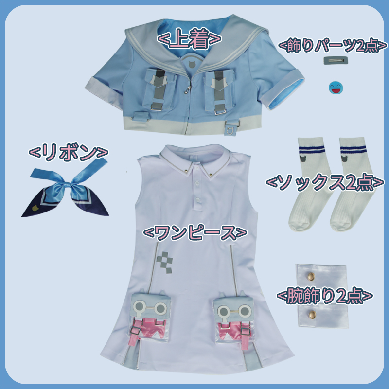 上着、ワンピース、飾り物(リボン、腕飾り2点、飾りパーツ2点、ソックス2点)