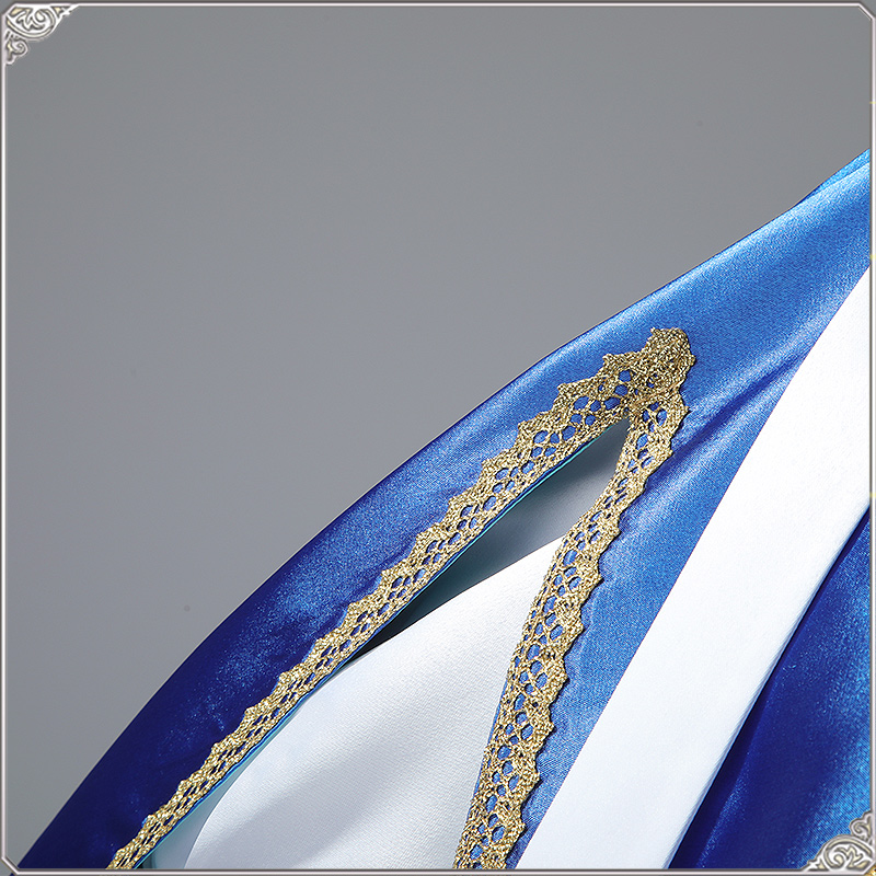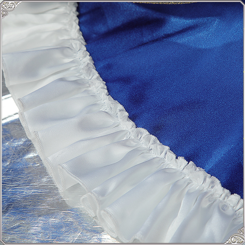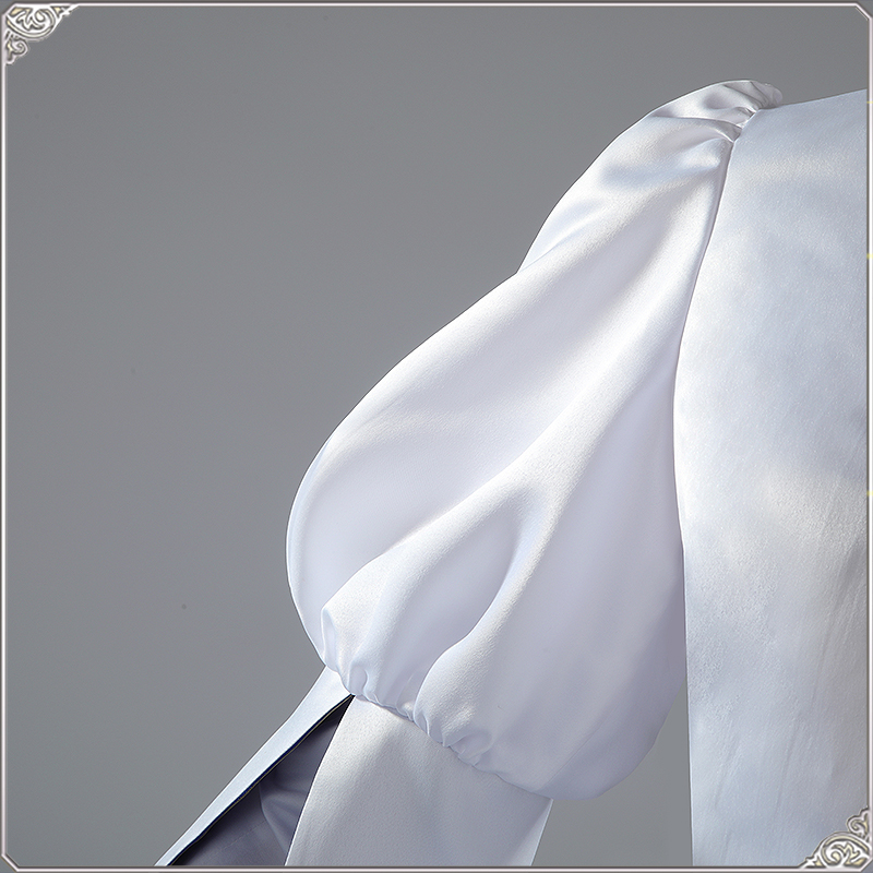 サテン生地で製作しています。いい素材を使ったので、着心地と換気性が良いです。ハイスプリットスカート、裾にフリルが施されていて華やかです。