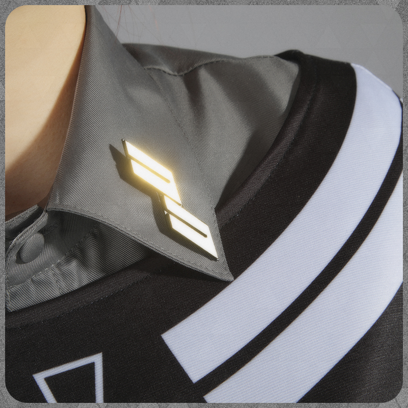 ニット生地で製作しています。黒を基調として、黒と白の絶妙な組み合わせで日常でも着用できます。